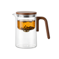 Eine durchdachte Glas-Teekanne, die Tee und Teeblätter sauber trennt –