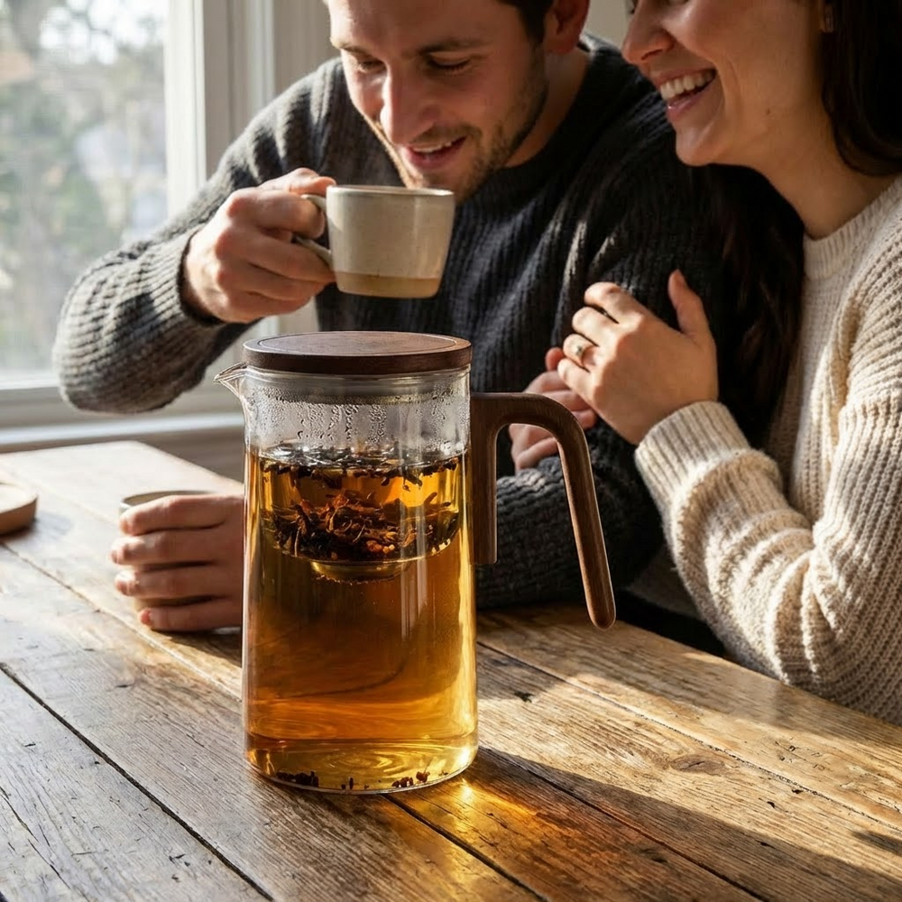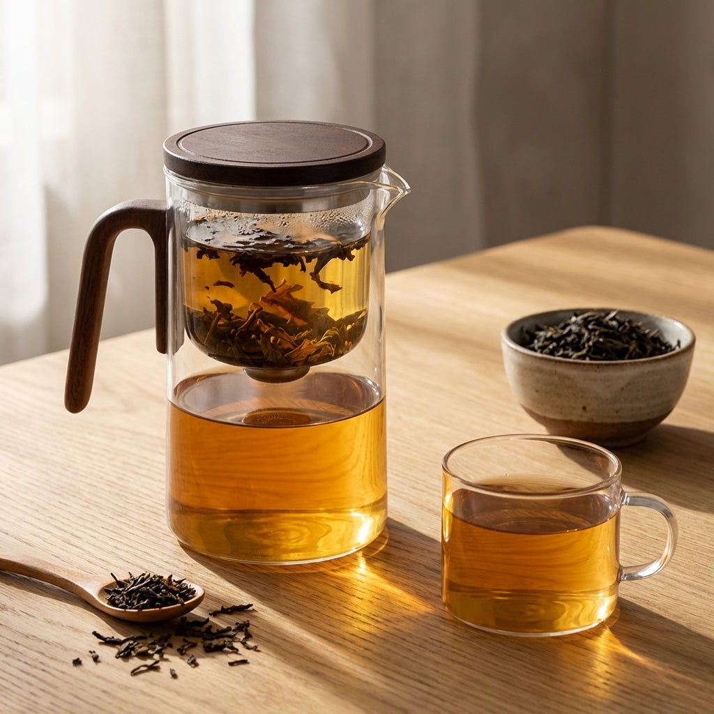 Klarer Tee ohne Bitterkeit, Tropfen oder Sieb-Stress.Eine durchdachte Glas-Teekanne für deinen Alltag